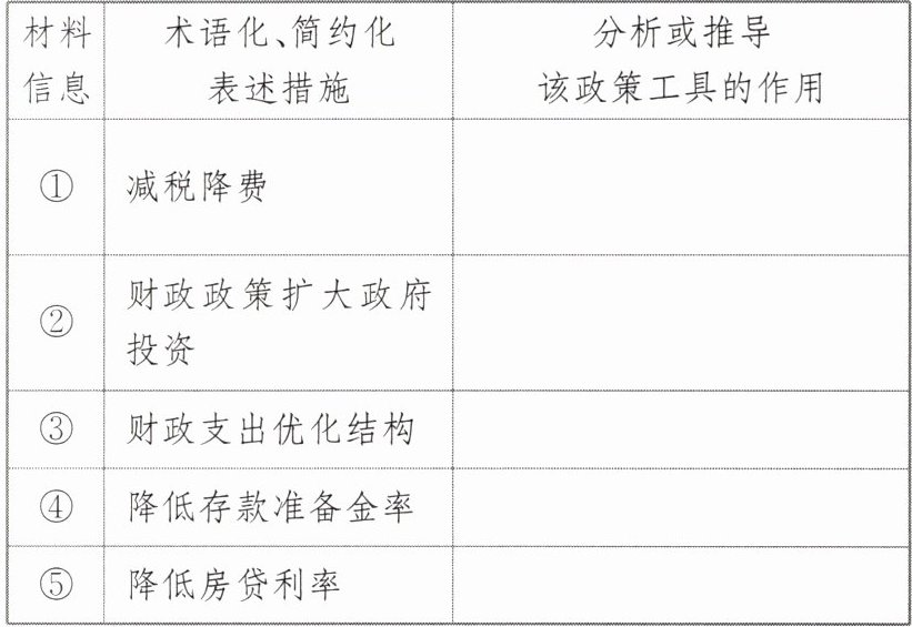(1)①找切入点:梳理材料中的政策工具作为分析推导的起点;②分析推导:逐点分析该政策工具对于推动经济高质量发展的作用