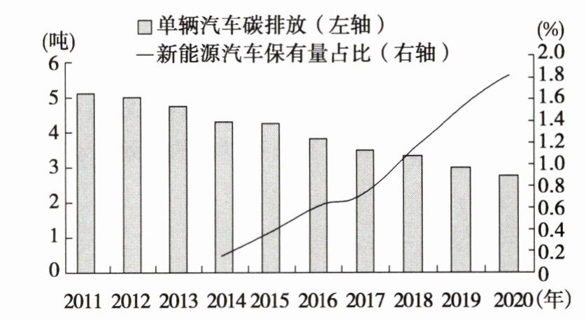 变式训练3.B 从图中信息可以看出,我国汽车产业单辆汽车碳排放量逐年下降,而新能源汽车保有量增长迅速,说明我国汽车产业发展符合绿色发展和创新发展的理念,①③符合题意。图中信息表明我国汽车产业贯彻了绿色发展理念,但不能直接看出缓解了人与自然的矛盾,②与题意不符。我国汽车产业发展贯彻绿色发展和创新发展的理念,有利于改变人们的生产生活方式,但从图中不能直接看出“改变了人们的生产生活方式”,④与题意不符。