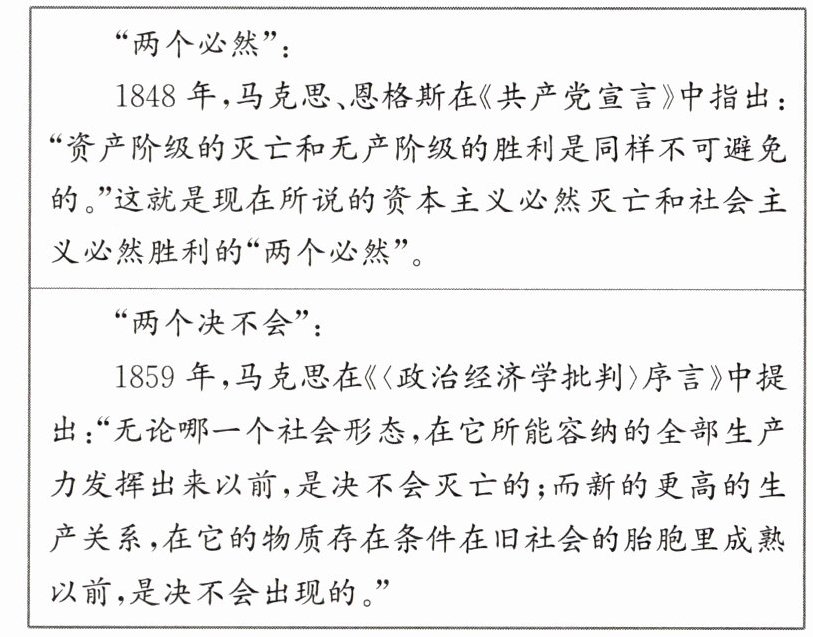 ①两者都依据社会基本矛盾运动规律阐释社会形态的更替问题 ②两者都论证了社会主义终将代替资本主义,但过程是漫长的 ③前者揭示社会形态更替的必然性,后者揭示其实现的条件性 ④前者反映资本主义社会的运行方式,后者反映社会形态更替的实现方式