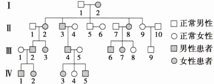 (1) 据图分析,HGF 最可能的遗传方式是____。假设该致病基因的频率为 p,根据最可能的遗传方式,Ⅳ2 生育一个患病子代的概率为____(列出算式即可)。