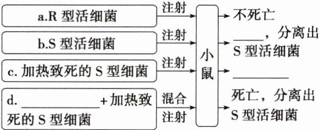 d.______ + 加热致死的S型细菌 → 混合 → 注射 → 死亡,分离出S型活细菌