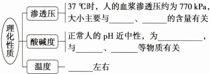 3.无机盐 蛋白质 7.35~7.45 $\mathrm{HCO_3^-}$ $\mathrm{H_2CO_3}$ 37℃