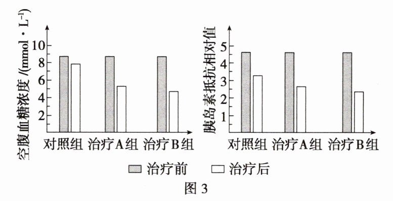 ①对照组的治疗处理是____,据图3分析治疗后三组空腹血糖都下降的共同原因是____。