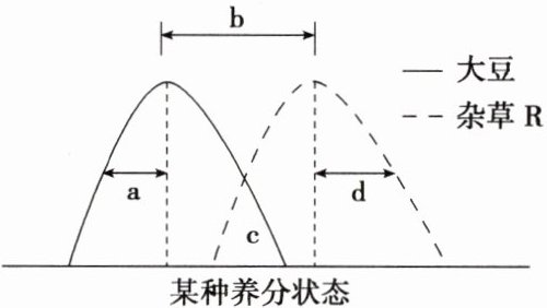 D.当c为0时,表明大豆和杂草R的该养分生态位发生了分化