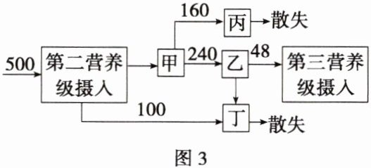 (4) 分析图3中能量关系可知,代表第二营养级用于生长、发育和繁殖的能量的是______,第三营养级粪便中的能量属于______固定的能量。