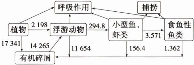 D.图中浮游动物流向分解者的能量包括遗体残骸和其产生的粪便中的能量