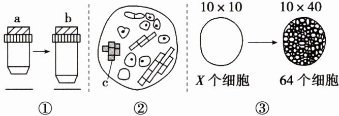 A.①中的 a、b 表示目镜,镜头 a 的放大倍数大于镜头 b