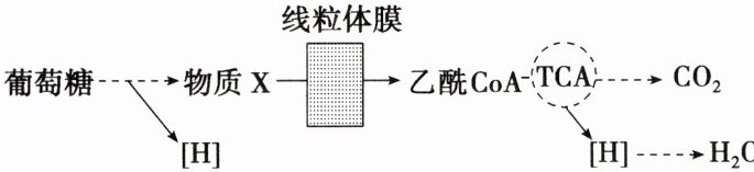 萄糖初步氧化分解产生物质X,X进入线粒体中