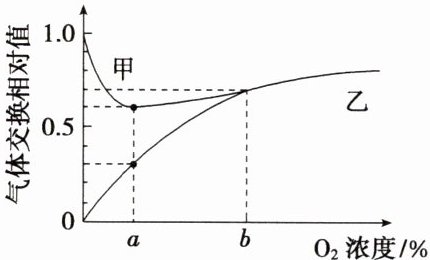(2023·山东卷,改编)某种植株的非绿色器官在不同 $ {O_{2}} $ 浓度下,单位时间内 $ {O_{2}} $ 吸收量和 $ {CO_{2}} $ 释放量的变化如图所示。若细胞呼吸分解的有机物全部为葡萄糖,请分析: