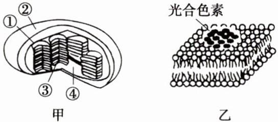 B.图乙来自甲中的③,上面只有色素分子而没有酶分子