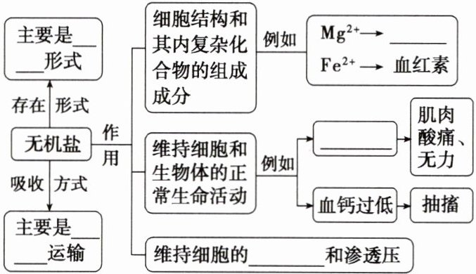 3.(上下左右)离子 主动 叶绿素 $Na^+$ 缺乏 酸碱平衡