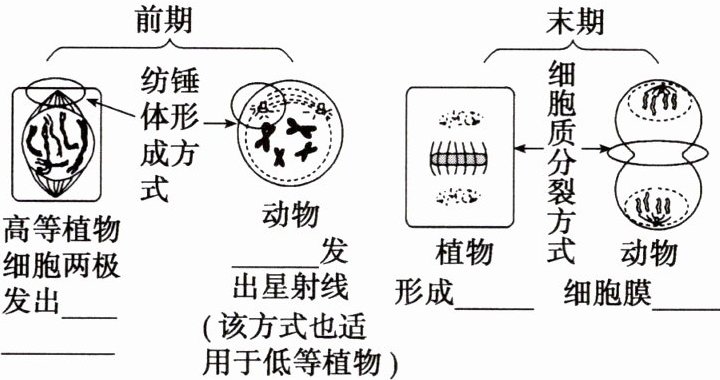 (2)(必修1 P₁₁₄正文)低等植物细胞和动物细胞都含有中心体,动物细胞有丝分裂前期,中心粒发出星射线形成纺锤体。( )