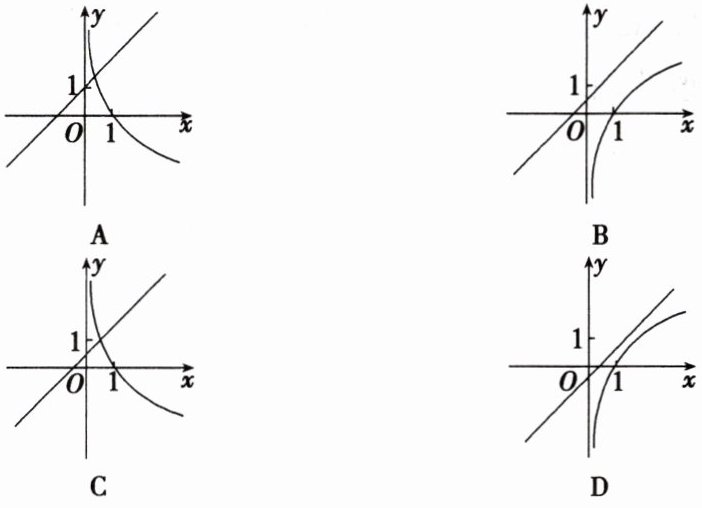 1. 在同一平面直角坐标系中,一次函数 $y = x + a$ 与对数函数 $y = \log_a x (a > 0$,且 $a \neq 1)$ 的图象可能是 ()