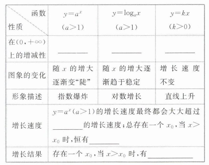 单调递增 单调递增 单调递增 y = kx(k>0) logₐx < kx a^x > kx > logₐx