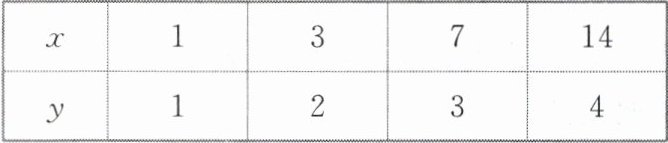当$ x = 7 $时,$ y_2 = \log_2 8 = 3 $;当$ x = 14 $时,$ y_2 = \log_2 15 $;