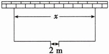 对点练5.现要围建一个面积为$360m^2$的矩形场地,要求矩形场地的一面利用旧墙(利用的旧墙需维修),其他三面围墙要新建,在旧墙对面的新墙上要留一个宽度为$2m$的进出口,如图所示. 已知旧墙的维修费用为$45$元/m,新墙的造价为$180$元/m. 设利用的旧墙长度为$x$(单位:m),修建此矩形场地围墙的总费用为$y$(单位:元).