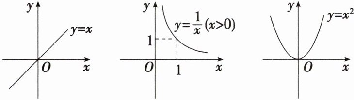 $y = x$ $y = \frac{1}{x}(x > 0)$ $y = x^2$