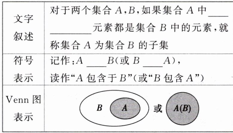 1. 不是任何两个集合之间都有包含关系。例如集合$A = \{1,3\}$,集合$B = \{2,4\}$,这两个集合就没有包含关系。