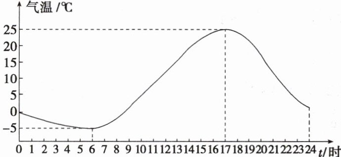 (2)该天某时刻的气温变化范围是$[-5,25]$。
