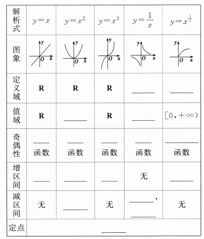 $\{x | x \neq 0\}$ $[0, +\infty)$ $[0, +\infty)$ $\{y | y \neq 0\}$ 奇 偶 奇 奇 非奇非偶 $\mathbf{R}$ $[0, +\infty)$ $\mathbf{R}$ $[0, +\infty)$ $(-\infty, 0)$ $(-\infty, 0)$ $(0, +\infty)$ $(1, 1)$