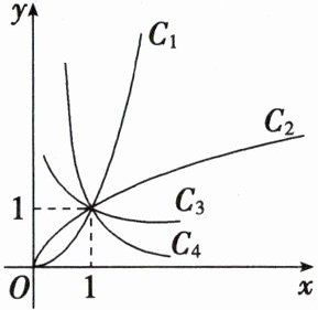 典例 2 (1)如图是幂函数$y = x^{n}$的部分图象,已知$n$取$\frac{1}{2},2, - 2, - \frac{1}{2}$这四个值,则与曲线$C_{1}, C_{2}, C_{3}, C_{4}$相对应的$n$依次为 (