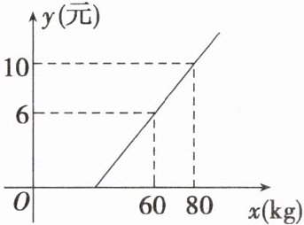 由题中图象可知,当$ x = 60 $时,$ y = 6 $;当$ x = 80 $时,$ y = 10 $.