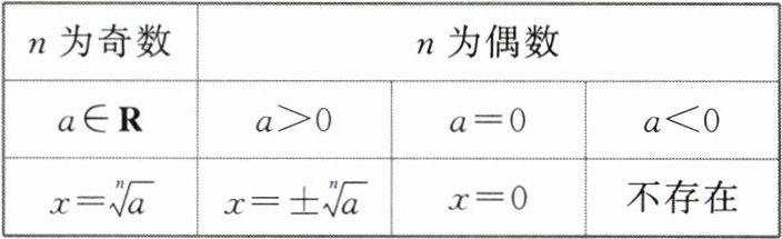 没有偶次方根.(2)0 的任何次方根都是 0,记作$\sqrt[n]{0} =$