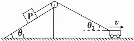 质量为m的物体P置于倾角为θ₁ = 37°的固定光滑斜面上,轻细绳跨过光滑定滑轮分别连接着物体P与小车,物体P与滑轮间的细绳平行于斜面,小车以6m/s的速度水平向右做匀速直线运动。当小车与滑轮间的细绳和水平方向的夹角θ₂ = 30°时,物体P的速率为( )
