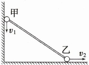 BD 设轻杆与竖直方向的夹角为$\theta$,则$v_1$沿杆方向的分量为$v_1// = v_1\cos\theta$,$v_2$沿杆方向的分量为$v_2// = v_2\sin\theta$,而$v_1// = v_2//$,当乙球距离起点$3m$时,有$\cos\theta = \frac{\sqrt{7}}{4}$,$\sin\theta = \frac{3}{4}$,解得此时甲、乙两球的速度大小之比为$\frac{v_1}{v_2} = \frac{3}{\sqrt{7}}$,故A错误,B正确;当甲球即将落地时,有$\theta = 90^{\circ}$,此时甲球的速度达到最大,而乙球的速度为零,故C错误,D正确。故选BD。