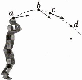 针对练 2. 如图所示,篮球从运动员手中被投出后,沿着一条优美的曲线飞行。用箭头标注篮球经过图中 a、b、c、d 四点时的速度方向。速度方向标注正确的是( )