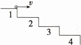 针对练 2. (2025·黑龙江实验中学高一下期末) 如图,每一级台阶的高为 5 cm,宽为 15 cm,某同学用发射器(忽略大小,未画出)从第 1 级台阶边缘向右水平弹射一个可以看作质点的小球,要使小球能落到第 4 级台阶上(小球没有与台阶顶点接触),取重力加速度为 $ g = 10 m/s^{2} $ 不计空气阻力,则弹射速度 $ v $ 可能是( )