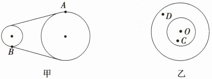 任务 1:图甲为皮带传动装置,在不打滑的情况下,两轮上 A、B 两点线速度与皮带的速度有什么关系?