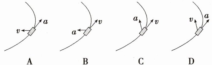 针对练.(2025·山东临沂高一下期末)为了行驶安全,司机通常会在弯道处减速,防止出现侧滑。下列选项图中能表示汽车减速通过弯道过程某处瞬时速度 $ v $ 和加速度 $ a $ 方向关系的是( )