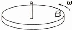 如图所示,在以角速度$\omega = 2\ rad/s$匀速转动的水平圆盘上,放一质量$m = 5\ kg$的滑块,滑块离转轴的距离$r = 0.2\ m$,滑块跟随圆盘一起做匀速圆周运动(二者未发生相对滑动)。