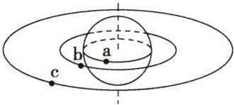 例 4 (2025·陕西西安期末)如图所示,$ a $ 为地球赤道上的物体,$ b $ 为沿地球表面附近做匀速圆周运动的人造卫星,$ c $ 为地球同步卫星。关于 $ a $、$ b $、$ c $ 做匀速圆周运动的说法中正确的是( )