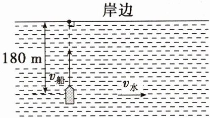 (2025·广东韶关高一下期末)如图所示,一次抢险救灾中消防救援队员驾船赶往现场解救被困群众安全返回岸边,某时刻船与安全的平直河岸最近距离为180m,河中各处的水流速度相同,大小为$v_{水}=3$m/s,船在静水中的速度大小为$v_{船}=4$m/s,为保证能让群众尽快脱离危险,船头始终垂直于河岸行驶,以下说法正确的是( )