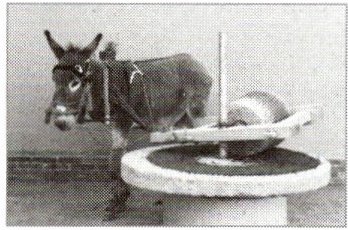 例 3 如图所示,假设驴拉磨的平均作用力大小为 $ 500 \, N $,运动的半径为 $ 1 \, m $,则驴拉磨转动一周所做的功为( )