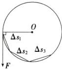 例3 D 由于$F$的方向与作用点的速度方向保持一致,因此$F$做功不为零。把圆周划分成很多小段研究,如图所示,当各小段的弧长$\Delta s_{i}$足够小($\Delta s_{i}\to0$)时,在$\Delta s_{i}$内$F$的方向几乎与该小段的位移方向重合,故驴拉磨转动一周所做的功为$W_{F}=F\Delta s_{1}+F\Delta s_{2}+F\Delta s_{3}·s=F·2\pi R = 1000\pi J$。