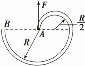 曲的槽道 $ AB $,由半径分别为 $ \frac{R}{2} $ 和 $ R $ 的两个半圆构成。如图所示,现用大小恒为 $ F $ 的拉力将一光滑小球从 $ A $ 点拉至 $ B $ 点,若拉力 $ F $ 的方向时刻与小球运动方向相同,则此过程中拉力所做的功为( )A.$ 0 $