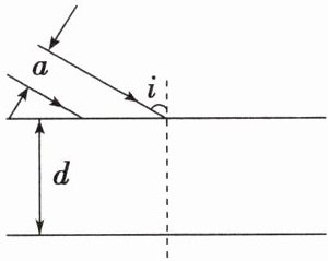 如图所示,宽为a的平行光束从空气斜射到两面平行的玻璃板上表面,入射角i=45°,光束中包含两种波长的光,玻璃板对这两种波长的光的折射率分别为n₁=1.5、n₂=√{3}。