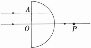针对练 2. 两束平行的细激光束垂直于半圆柱玻璃的平面射到半圆柱玻璃上,如图所示。已知其中一束光沿直线穿过玻璃,它的入射点是 $ O $,另一束光的入射点为 $ A $,穿过玻璃后两束光线交于 $ P $ 点。已知玻璃半圆截面的半径为 $ R $,$ OA = \frac{R}{2} $,$ OP = \sqrt{3} R $。则该玻璃材料的折射率为( )