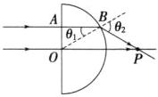 可得$\sin\theta_{1} = \frac{OA}{OB} = \frac{1}{2}$,解得$\theta_{1} = 30^{\circ}$。由几何关系可知$BP = R$,$\angle BPO = \angle BOP = \theta_{1} = 30^{\circ}$,则折射角$\theta_{2} = 60^{\circ}$。由折射定律