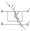 (3)光路图如图所示。由图可知,折射角的测量值$r'>r$