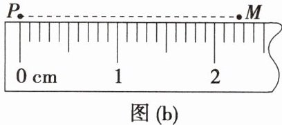 ③用刻度尺测量 $ PM $ 和 $ OM $ 的长度 $ d_1 $ 和 $ d_2 $,$ PM $ 的示数如图(b)所示,$ d_1 $ 为 ________ $ cm $。测得 $ d_2 $ 为 $ 3.40 \, cm $。