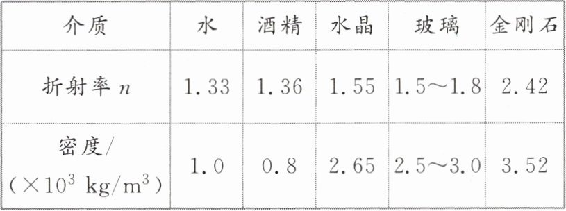 【师生互动】问题探究:表中列出了五种物质的折射率、密度值。