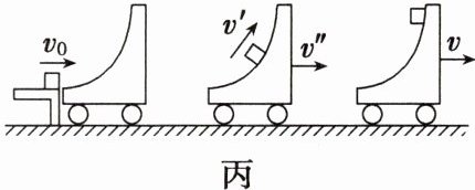 任务3. 如图丙所示,速度为$v_{0}$的物体滑上光滑水平面上的小车。物体与小车组成的系统动量守恒吗?