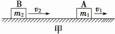 【师生互动】如图甲所示,光滑水平面上质量分别为$m_{1}$、$m_{2}$的物体A、B,沿同一直线向同一方向运动,速度分别为$v_{1}$和$v_{2}$,且$v_{2}>v_{1}$,碰后A、B的速度分别为${v_{1}}'$、${v_{2}}'$。