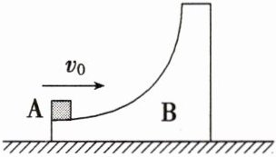 (2024·湖南长沙高二月考)在光滑水平地面上放一个质量 $ M = 2 \, kg $ 的内侧带有光滑弧形凹槽的滑块 B,凹槽的底端切线水平,如图所示。质量 $ m = 1 \, kg $ 的小物块 A 以 $ v_0 = 6 \, m/s $ 的水平速度从滑块 B 的底端沿槽上滑,恰好能到达滑块 B 的顶端。重力加速度 $ g $ 取 $ 10 \, m/s^2 $,不计空气阻力。在小物块 A 沿滑块 B 滑行的整个过程中,下列说法正确的是( )