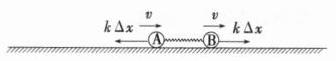 如图所示,刚性小球B静止在光滑水平面上,左端与水平轻质弹簧相连,刚性小球A(与B球半径相同)向右运动,并与弹簧发生相互作用。