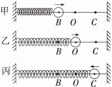 【师生互动】如图为水平方向的弹簧振子,$O$点为其平衡位置,先用力使小球向左偏离一小段距离到$B$点,由静止释放,小球在$BC$间做简谐运动。